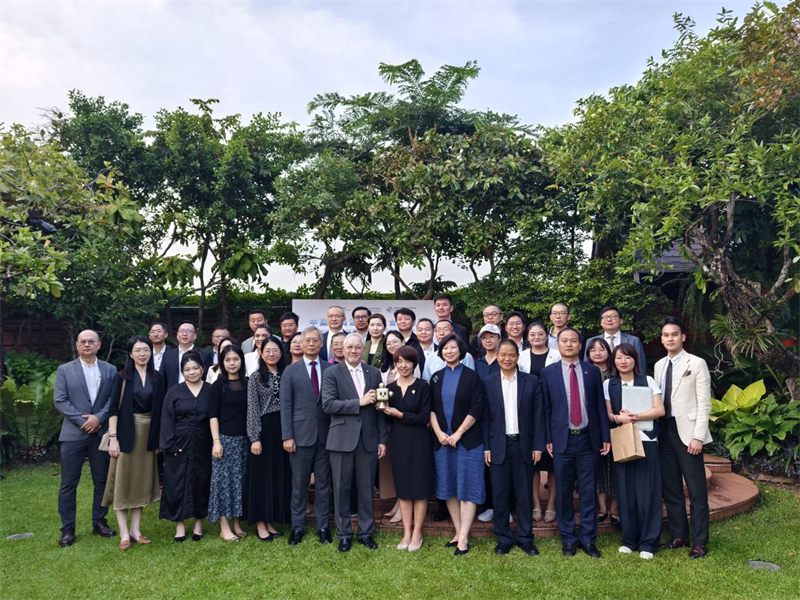 人民网曼谷10月23日电 (记者简承渊)当地时间21日,首届中国—澜湄供应链合作研讨会暨第四届中国国际供应链促进博览会泰国首次路演以线上线下相结合的方式在泰国曼谷举行。 出席会议嘉宾合影。